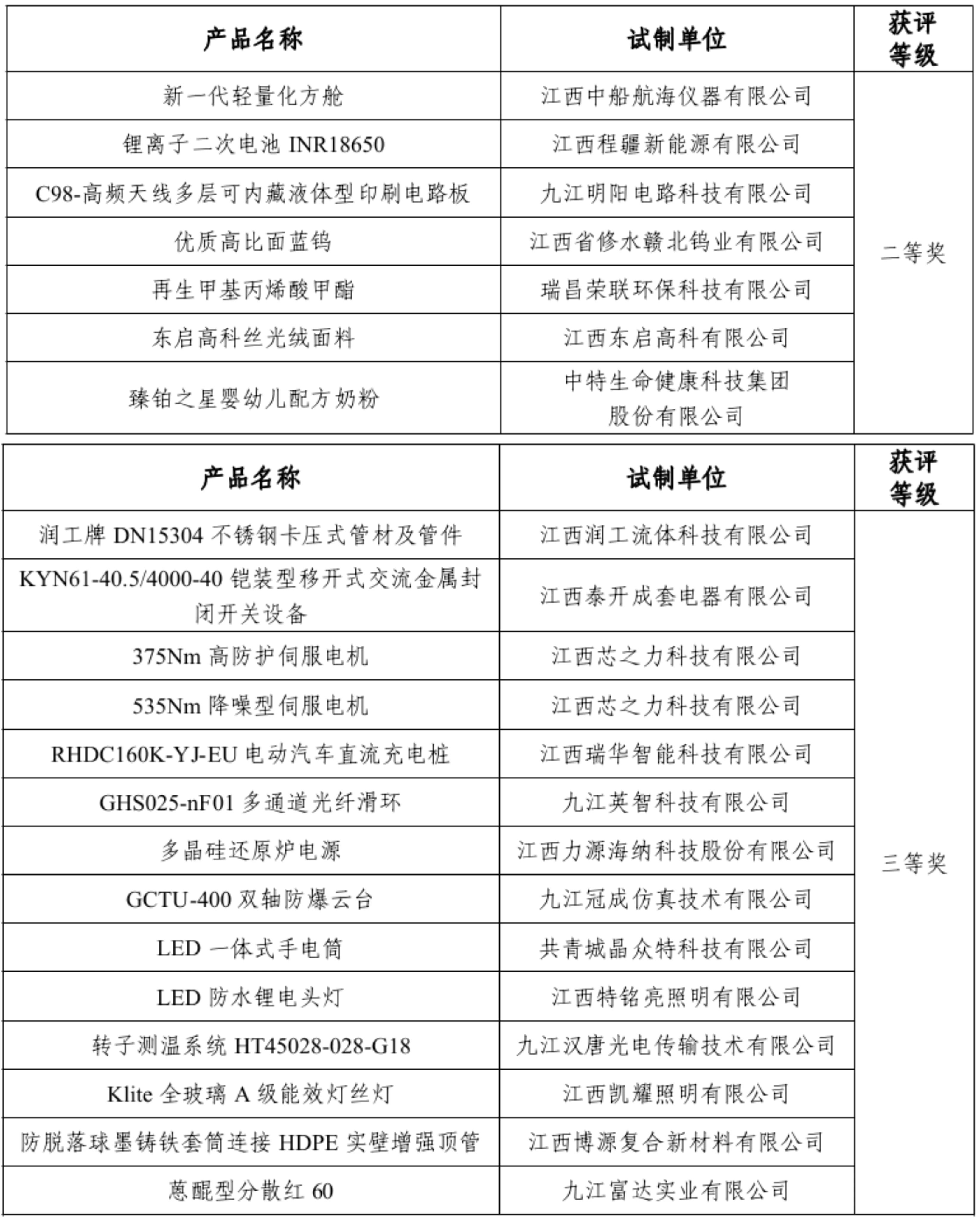 2024年度江西省优秀新产品名单公布!九江29款新产品上榜