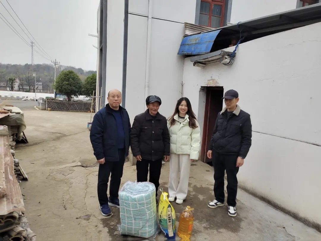 天时人事日相催,冬至阳生春又来。冬至佳节之际,为深入践行敬老孝亲传统美德,切实把党和政府的温暖送到困难群众与老党员心坎上,在市工信局党委、柴桑区委组织部和狮子街道党工委的指导下,市工信局驻村选调生邱逸云牵头,联合市工信局驻村工作队与牌楼村 “两委” 成员组成慰问组,开展 “情暖冬至护民生 党心牵挂暖夕阳” 走访慰问活动,为辖区五保户、老党员送上节日祝福与冬日必备物资。
